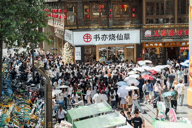 在销量表现上,书亦烧仙草在交通枢纽店、热门旅游城市、景点门店销量增幅尤为显著,增幅均在200%以上。其中,四川九寨沟诺日朗店成为全国门店营收及日店均TOP1,每日门店出杯近2000+杯。重庆北站和广州南站店紧随其后,跻身营收榜和日店均TOP前3。此外,新一线及三线城市销量增速明显,显示品牌在下沉市场的巨大潜力。